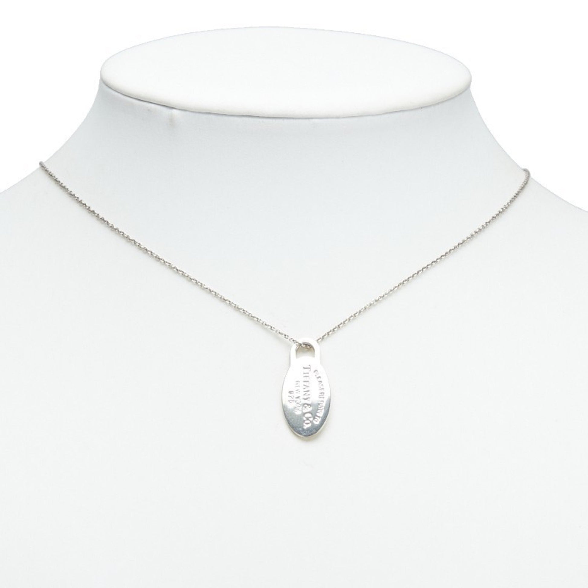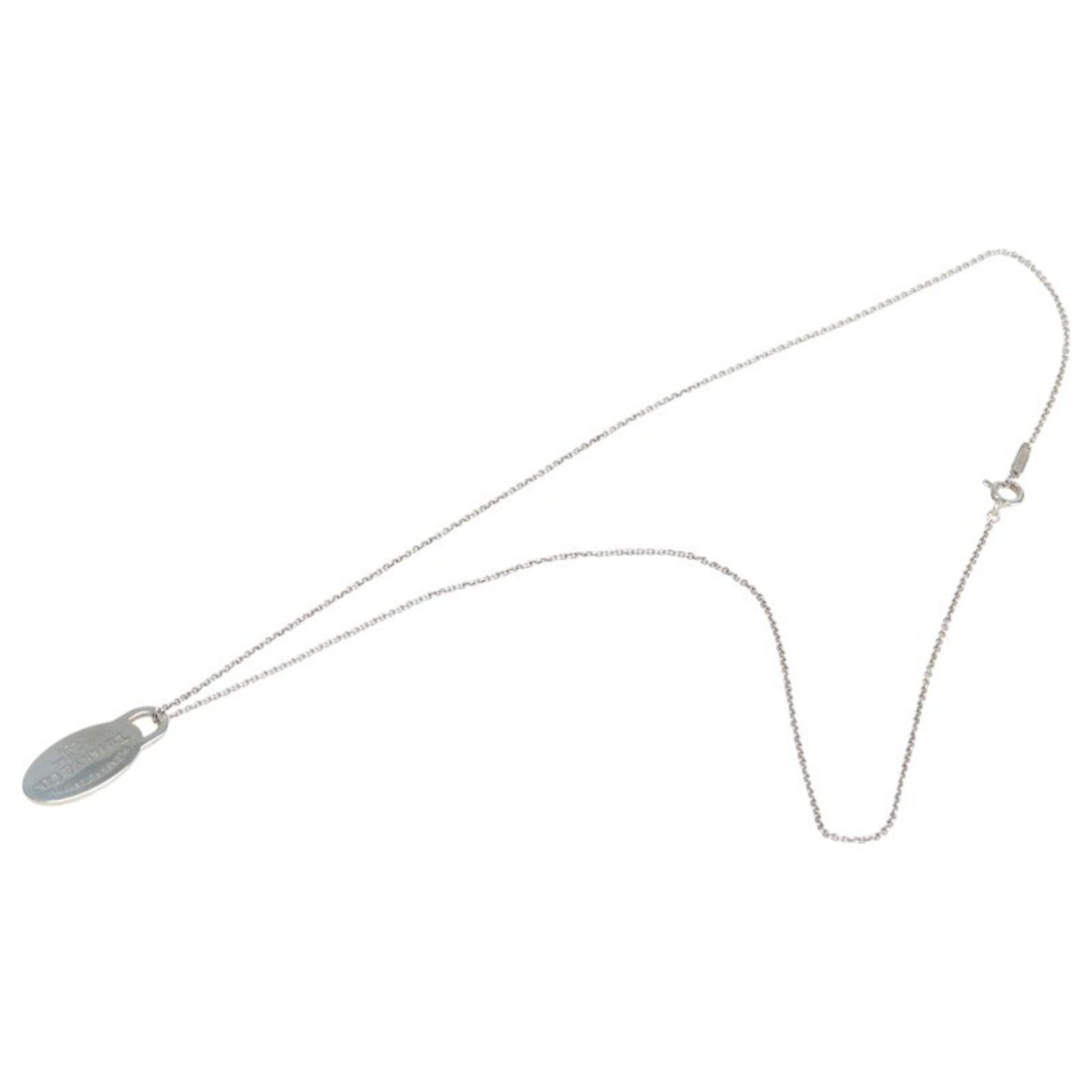 Tiffany & Co. Please Return To Plate Chain Pendant Necklace In 925 Sterling Silver.