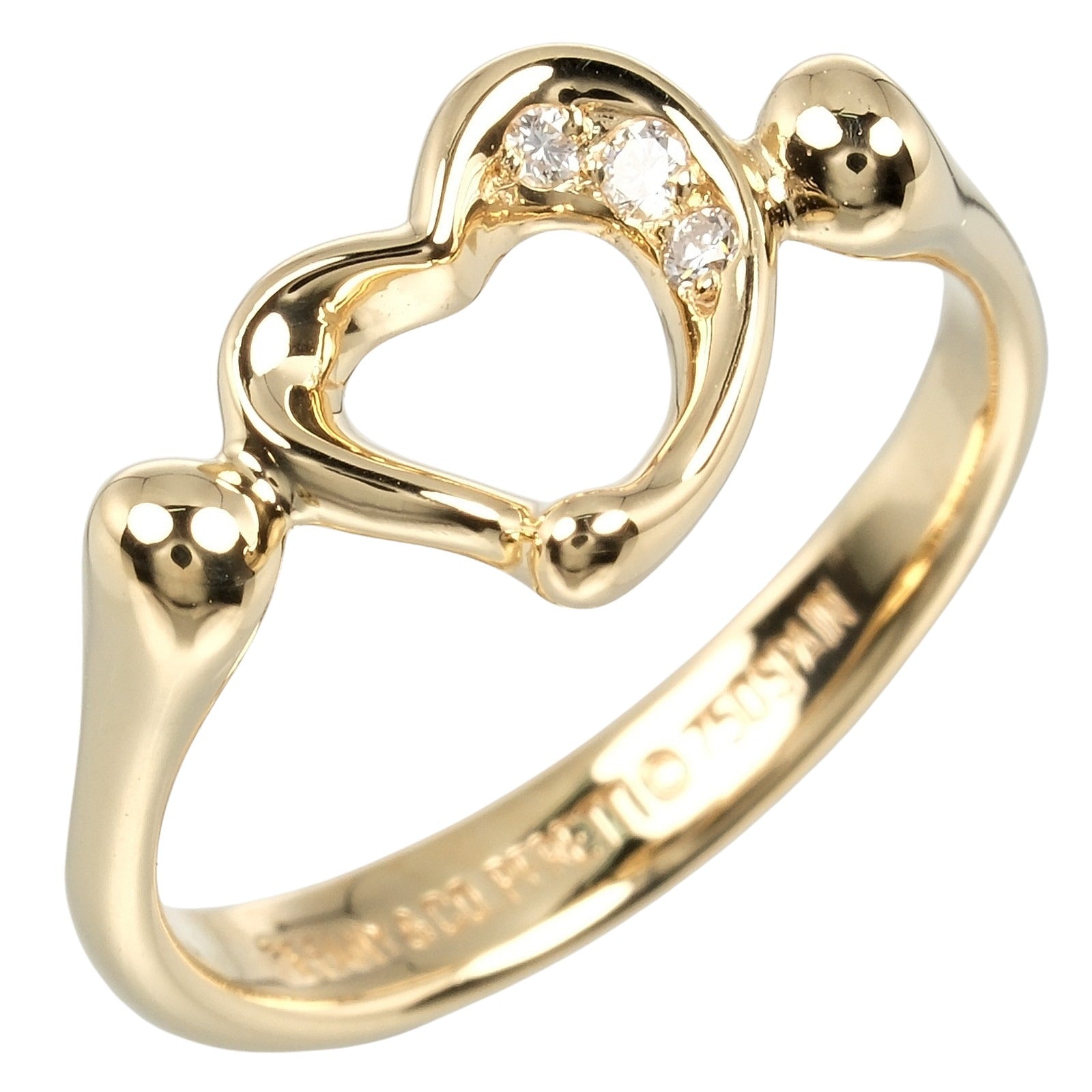 Tiffany&Co. Ring K18 Yellow Gold, 3P Diamond Gold Open Heart Women