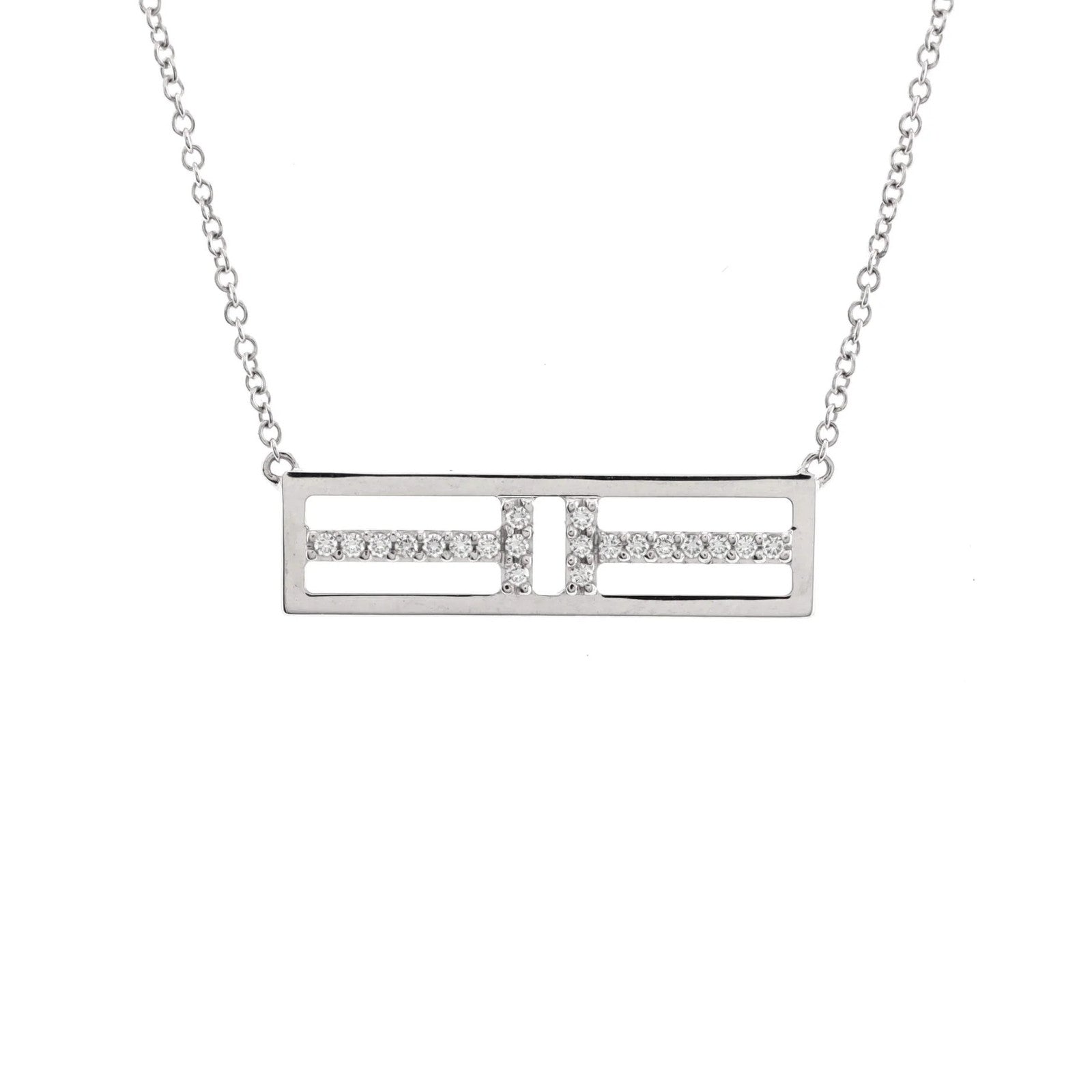 Model: T Open Horizontal Bar Pendant Necklace 18K White Gold with Diamond
