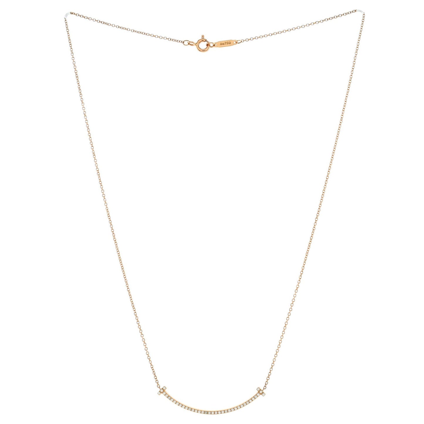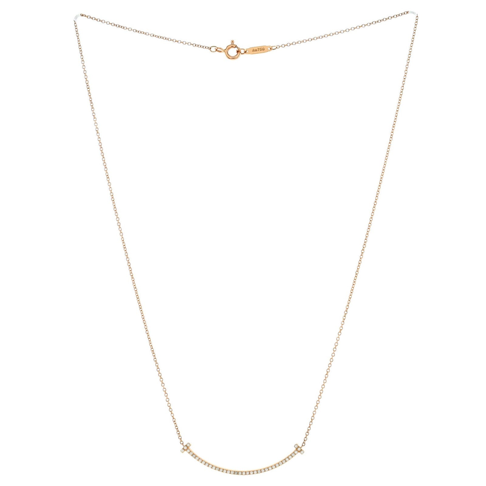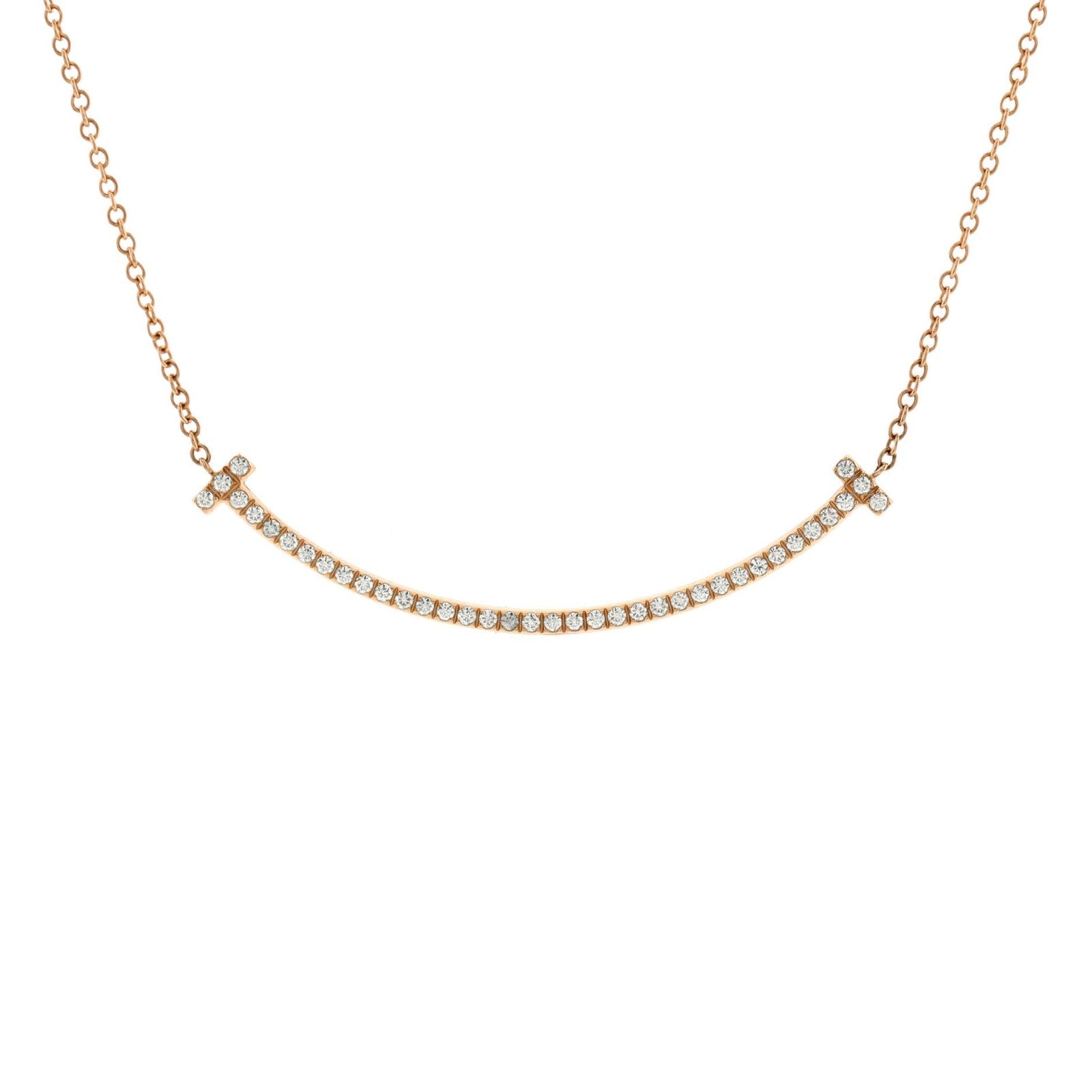 Tiffany & Co. T Smile Pendant Necklace 18K Rose Gold With Diamonds Small