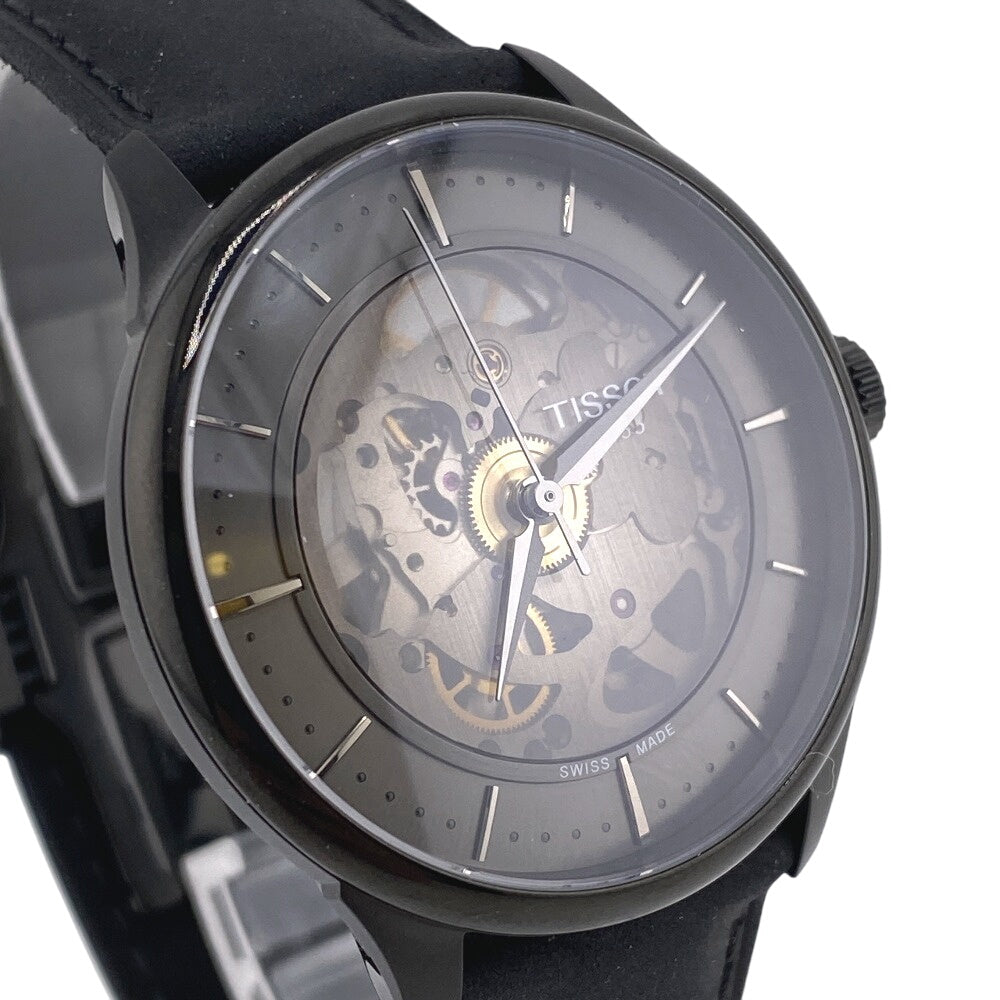 Tissot Watches Mechanical Automatic T139836A Stainless Steel, Leather Black Skeleton Shuman De
