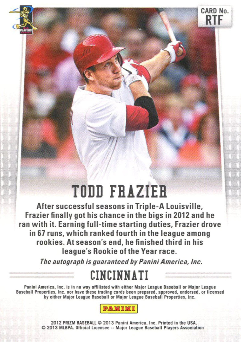 Todd Frazier Autographed 2012 Panini Prizm Rookie Card