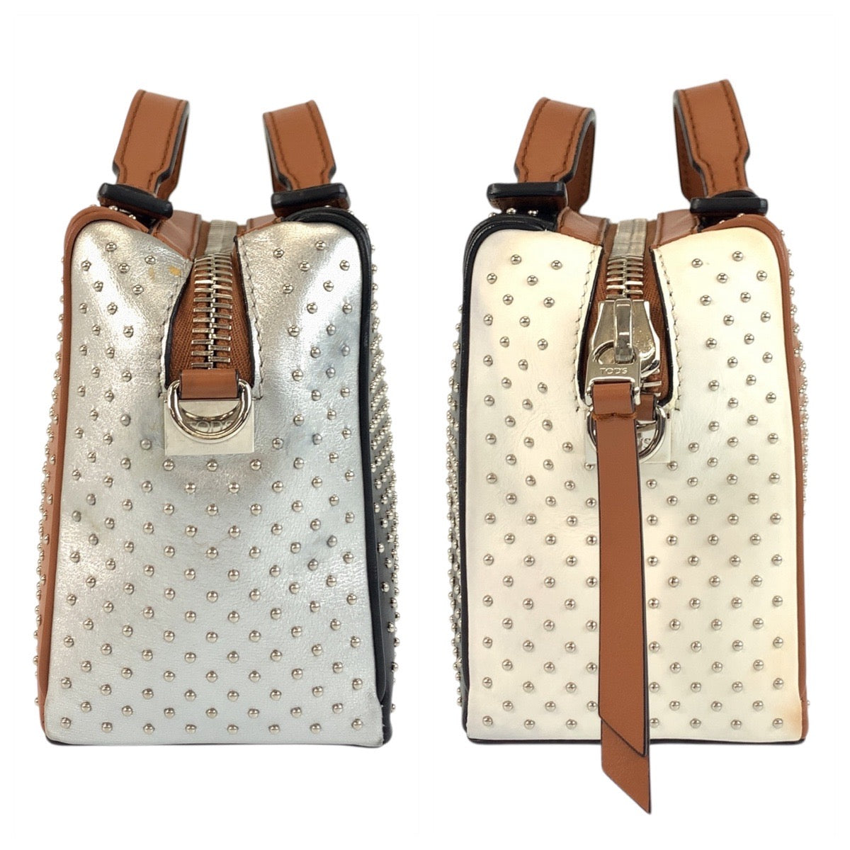 Tod'S Shoulder Bag Leather Brown Black Silvermetal Shoulder Bag Handbag 2Way Gommini Women