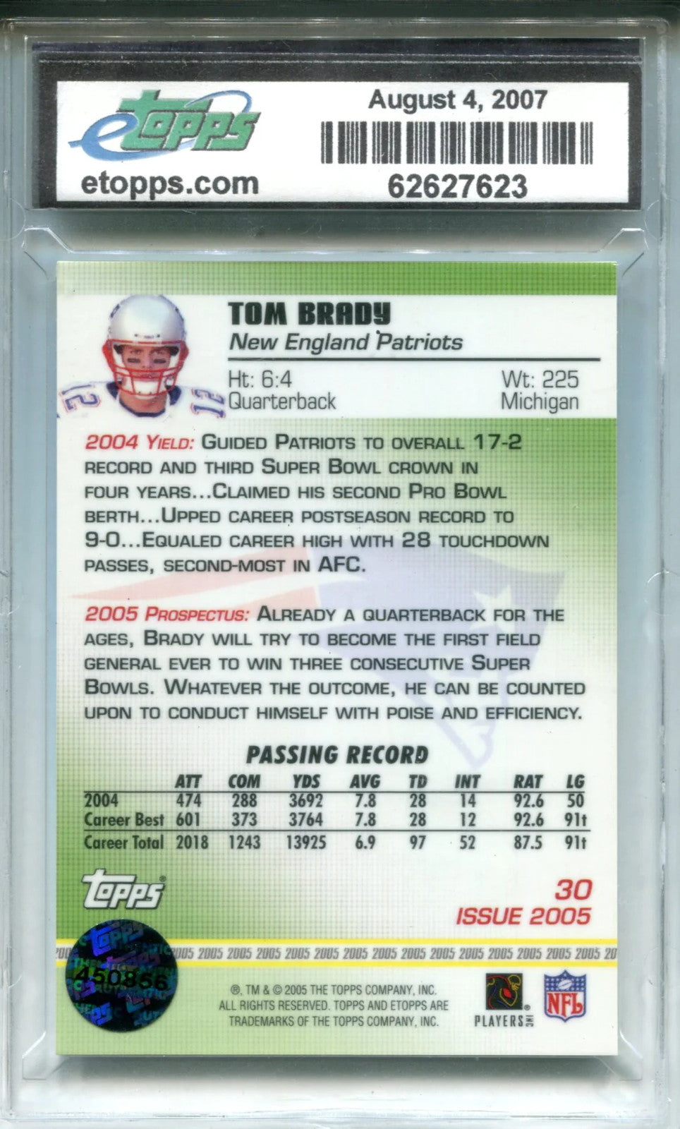 Tom Brady 2005 E-Topps Card