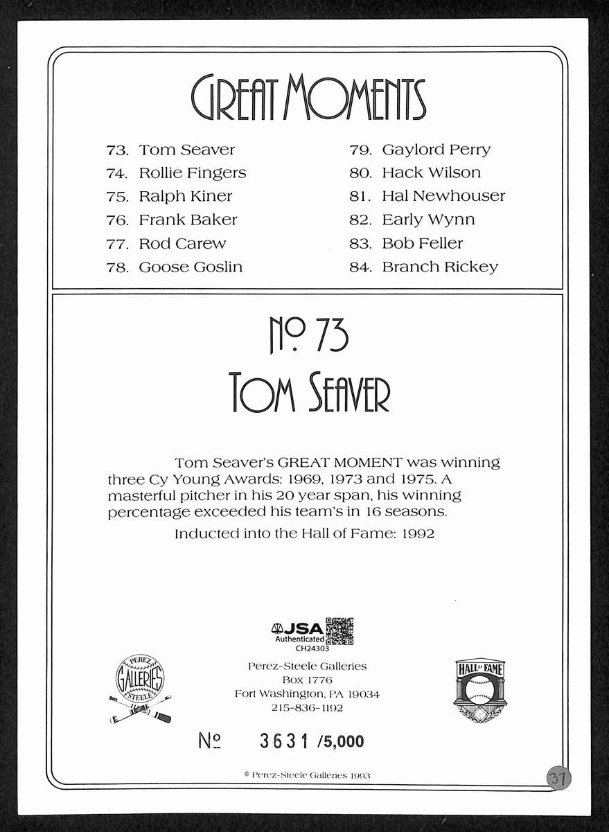 Tom Seaver Signed/Auto 1993 Perez Steele Great Moments No. 73 Mets Jsa 199330