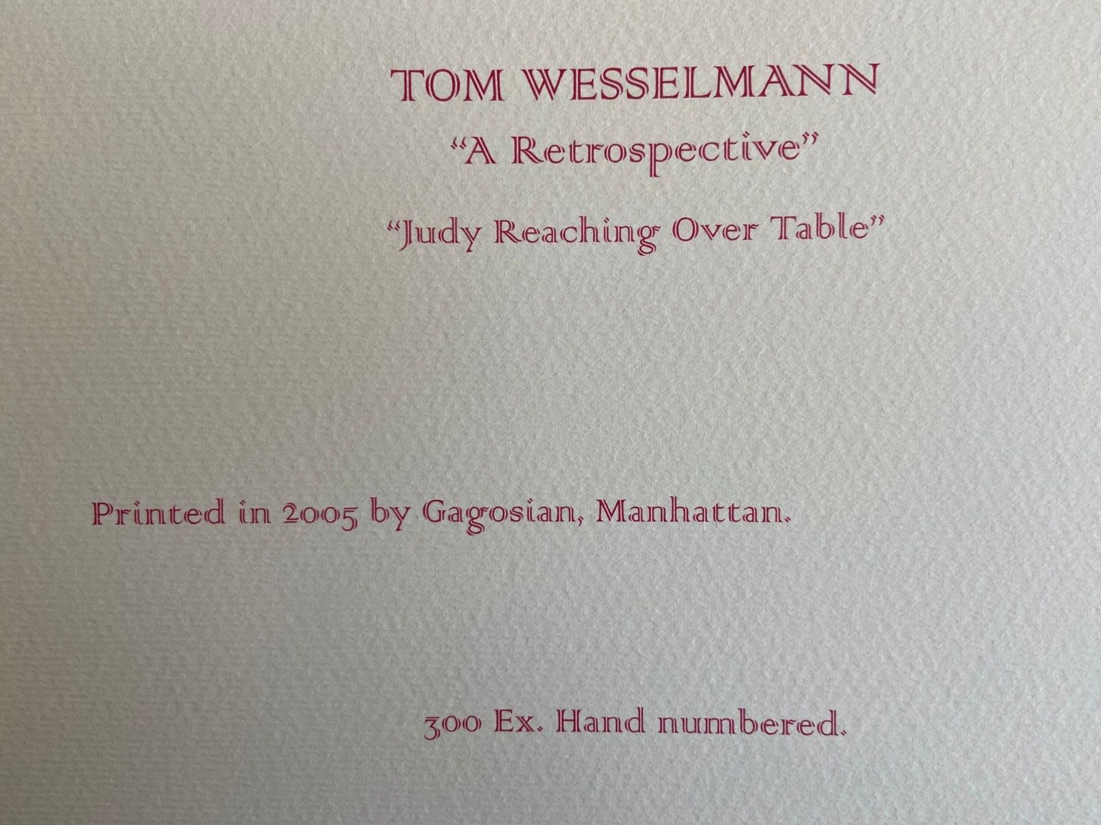 Tom Wesselmann '' Judy stretches across the table " Lithograph printed in 2005 by Gagosian, Manhattan Tom Wesselmann signature on the plate. The work measures 31 x 40 cm 300 numbered copies. Tom Wesselmann ''Judy stretches across the table" Lithograph printed in 2005 by Gagosian, Manhattan Tom Wesselmann signature on the plate. The work measures 31 x 40 cm 300 numbered copies.