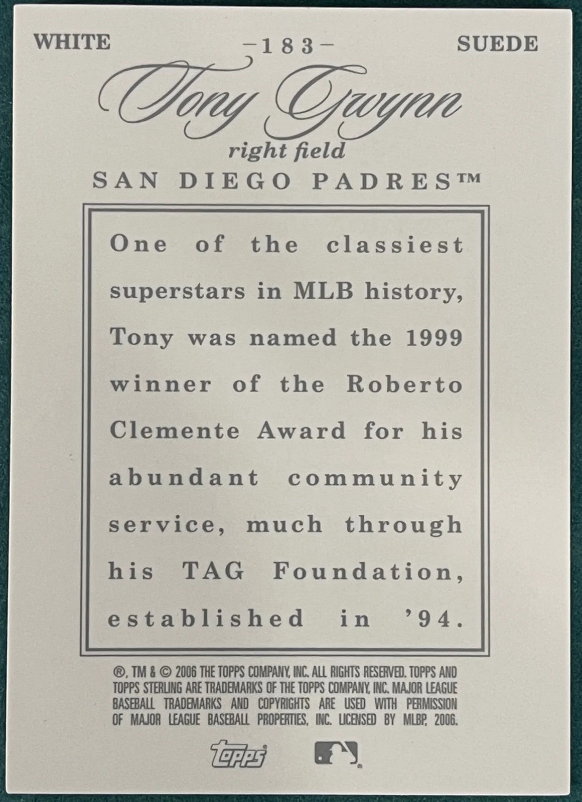 Tony Gwynn 2002 Topps Sterling Card 29/50