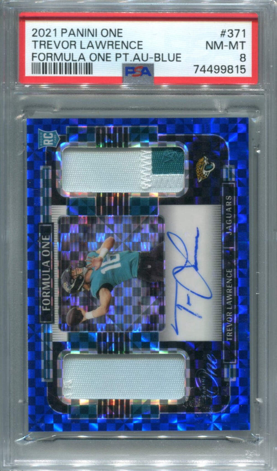Trevor Lawrence 2021 Panini Formula One Blue Patch Card #371 Psa 8 12/25