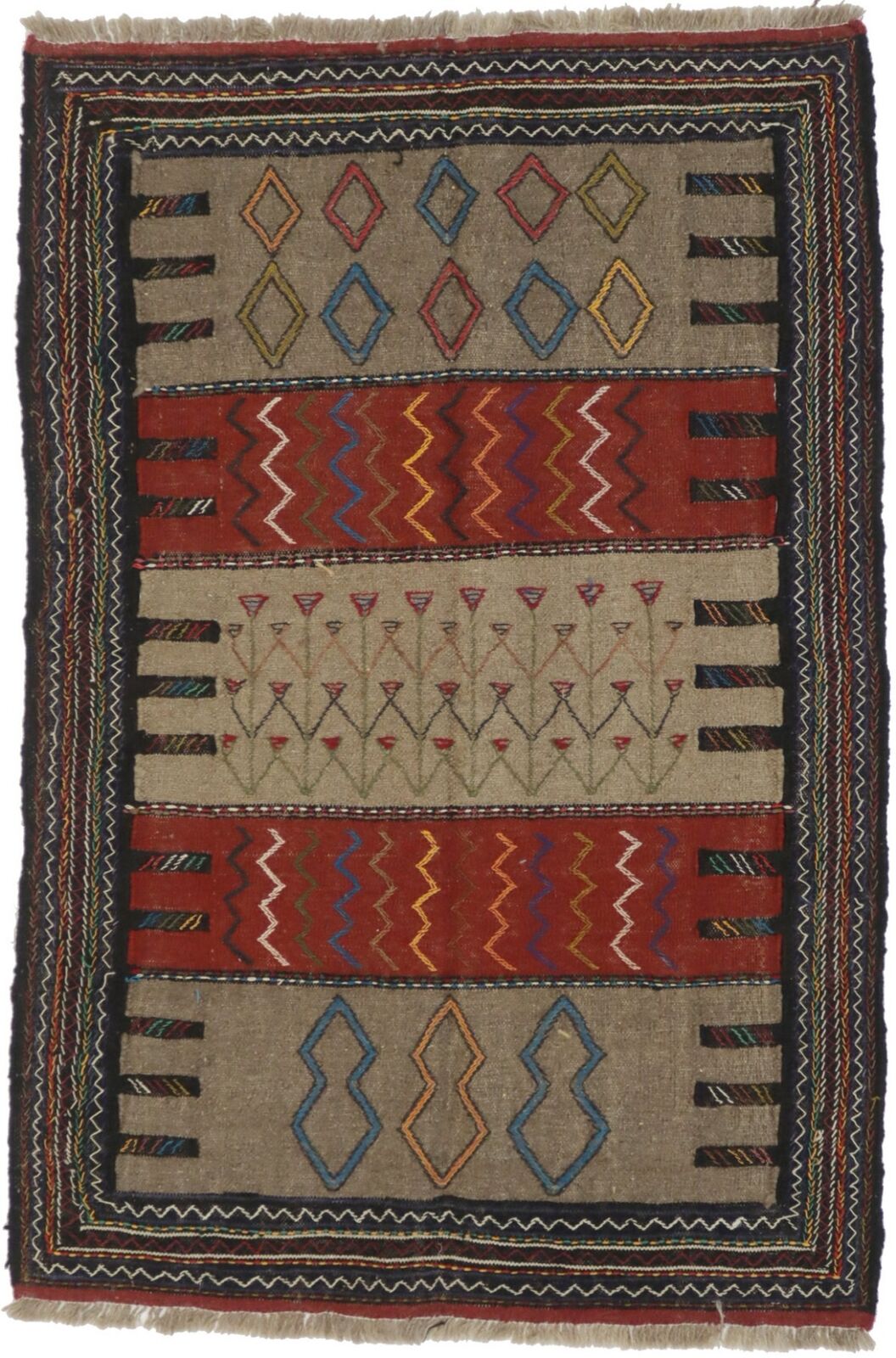 Tribal Sumak Herati Flat-Weave Oriental Rug Khaki