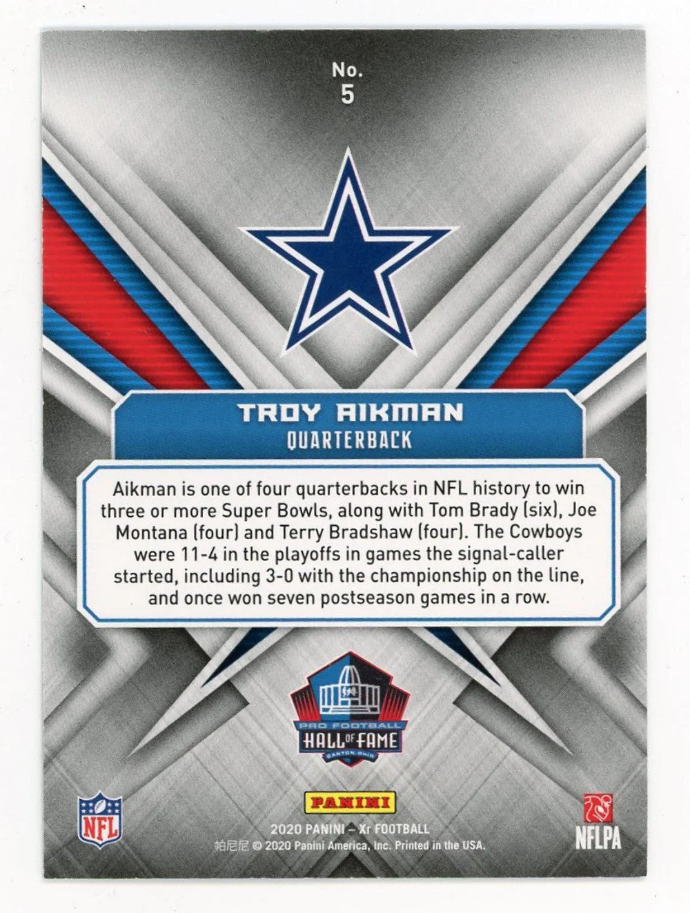 Troy Aikman 2020 Panini Gilden Greats #5 Card 3/5