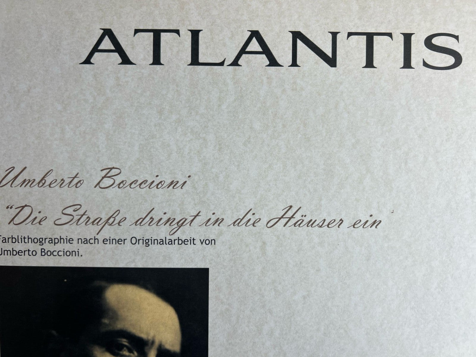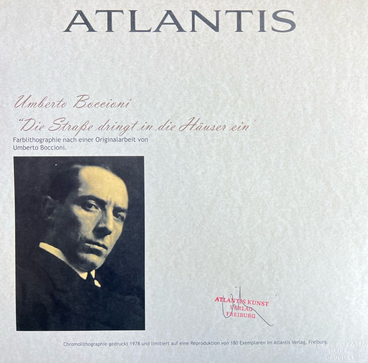 Umberto Boccioni " The road penetrates the houses " Chromolithography printed in 1978 In 180 specimens from Atlantis Verlag, Freiburg 32 x 32 cm Signature Umberto Boccioni on the COA slab signed in Penna Dry and authentic stamp of the publishing house Atlantis Kunst Verlag Freiburg Umberto Boccioni "The road penetrates the houses" Chromolithography printed in 1978In 180 specimens from Atlantis Verlag, Freiburg 32 x 32 cm Signature Umberto Boccioni on the COA slab signed in Penna Dry and authentic stamp of the publishing house Atlantis Kunst Verlag Freiburg