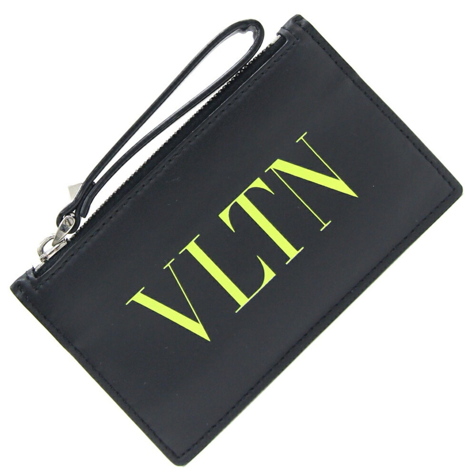 Valentino Coin Case Ty2P0540Lvn Black Neon Yellow Leather Fragment Card Wallet