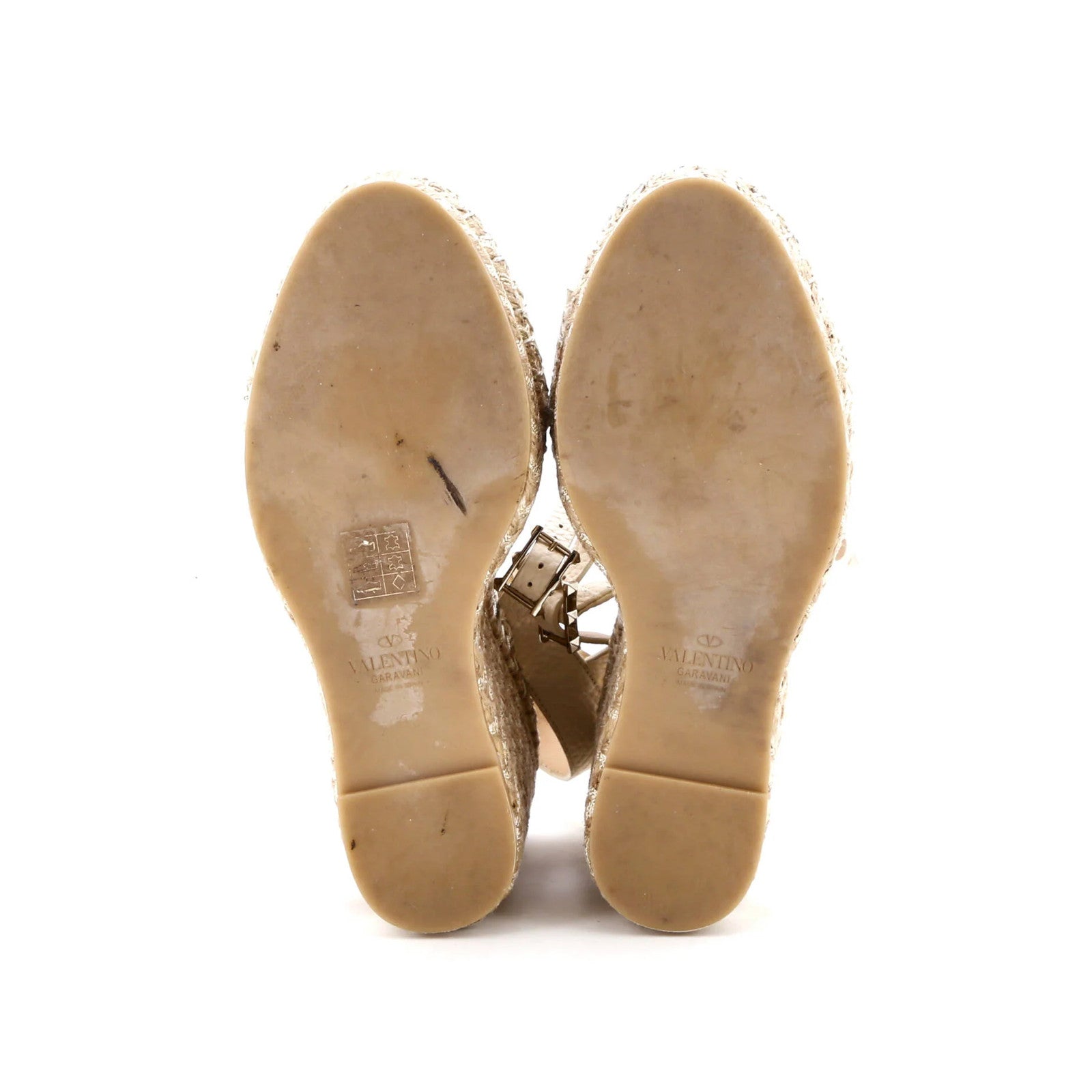 Valentino Garavani Women'S Rockstud Ankle Strap Double Wedge Sandals Leather