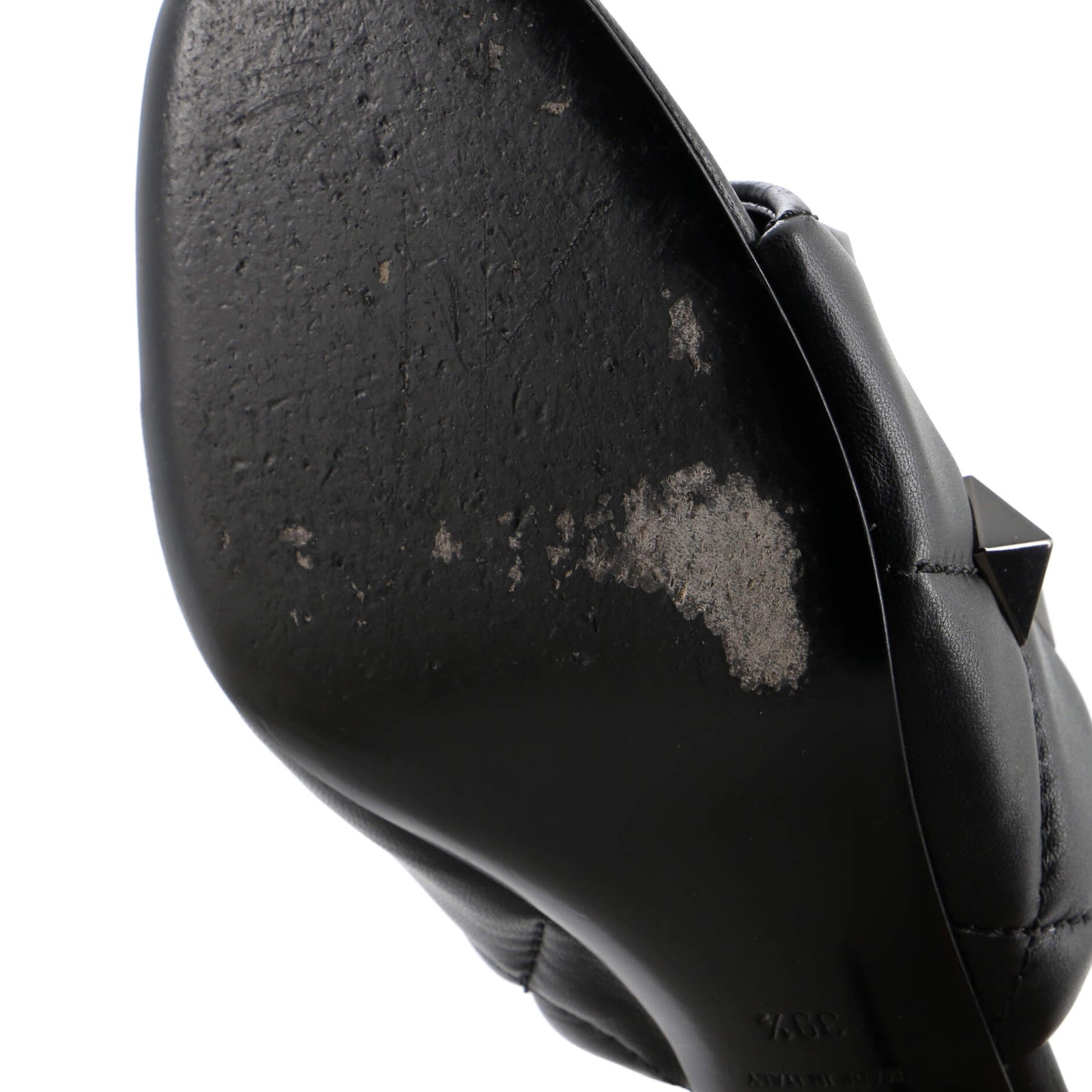 Condition: Very good. Wear and scuffs throughout, peeling on heels, minor creasing on uppers, wear, peeling, scuffs, and indentations on outer soles, scratches on hardware.