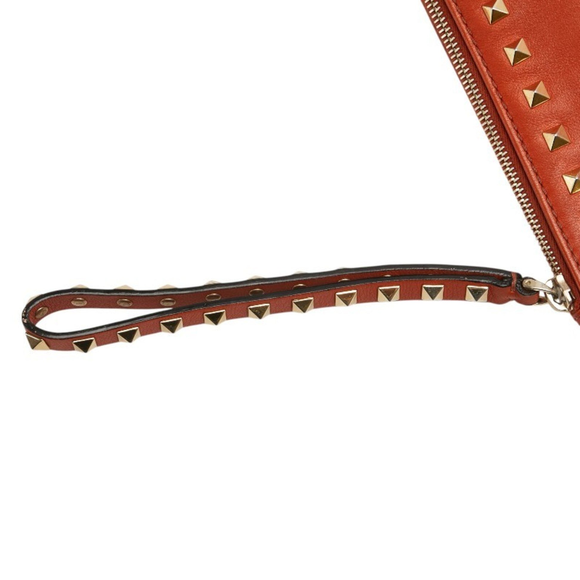 Valentino Rockstud Clutch Bag/Second Bag In Orange Leather
