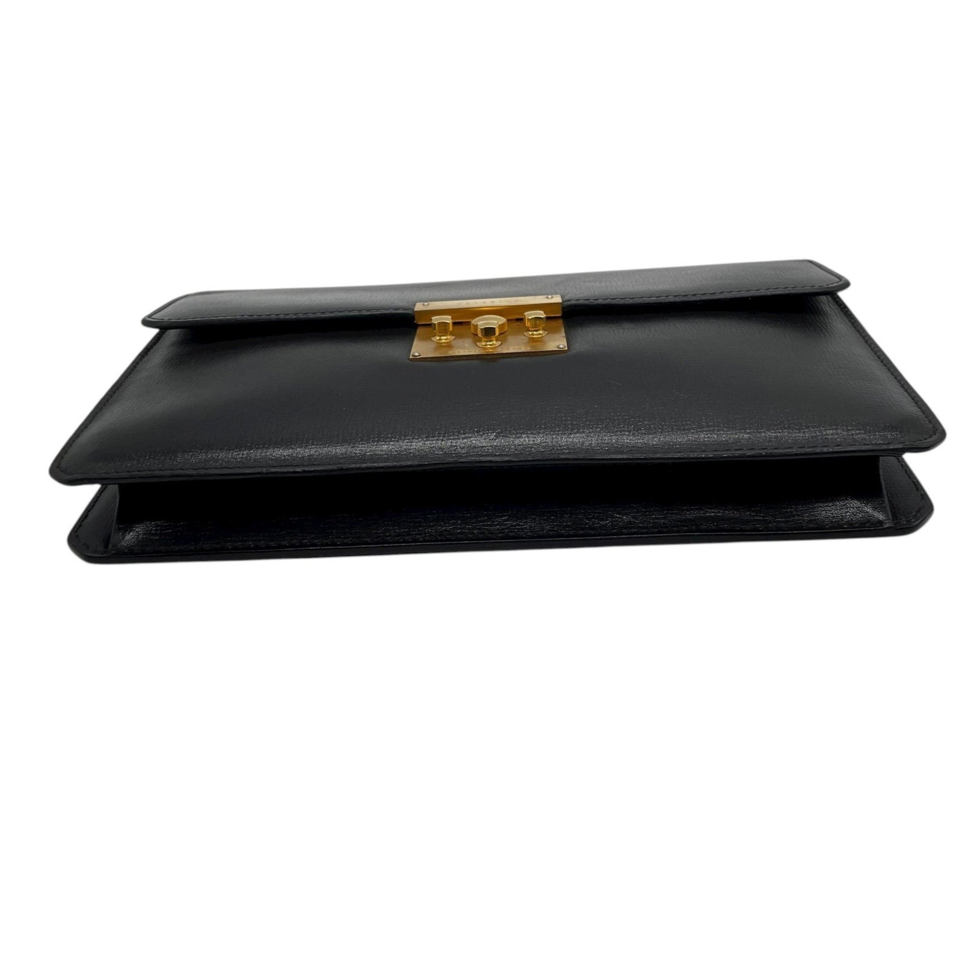 Valextra Clutch Bag/Second Bag In Black Leather With Gold Hardware