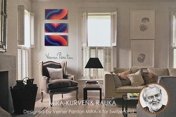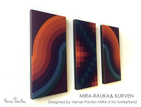 Verner Panton Set Of 3 Mira-Rauka Kurven Multi Wall Art Board Fabric Mid Century