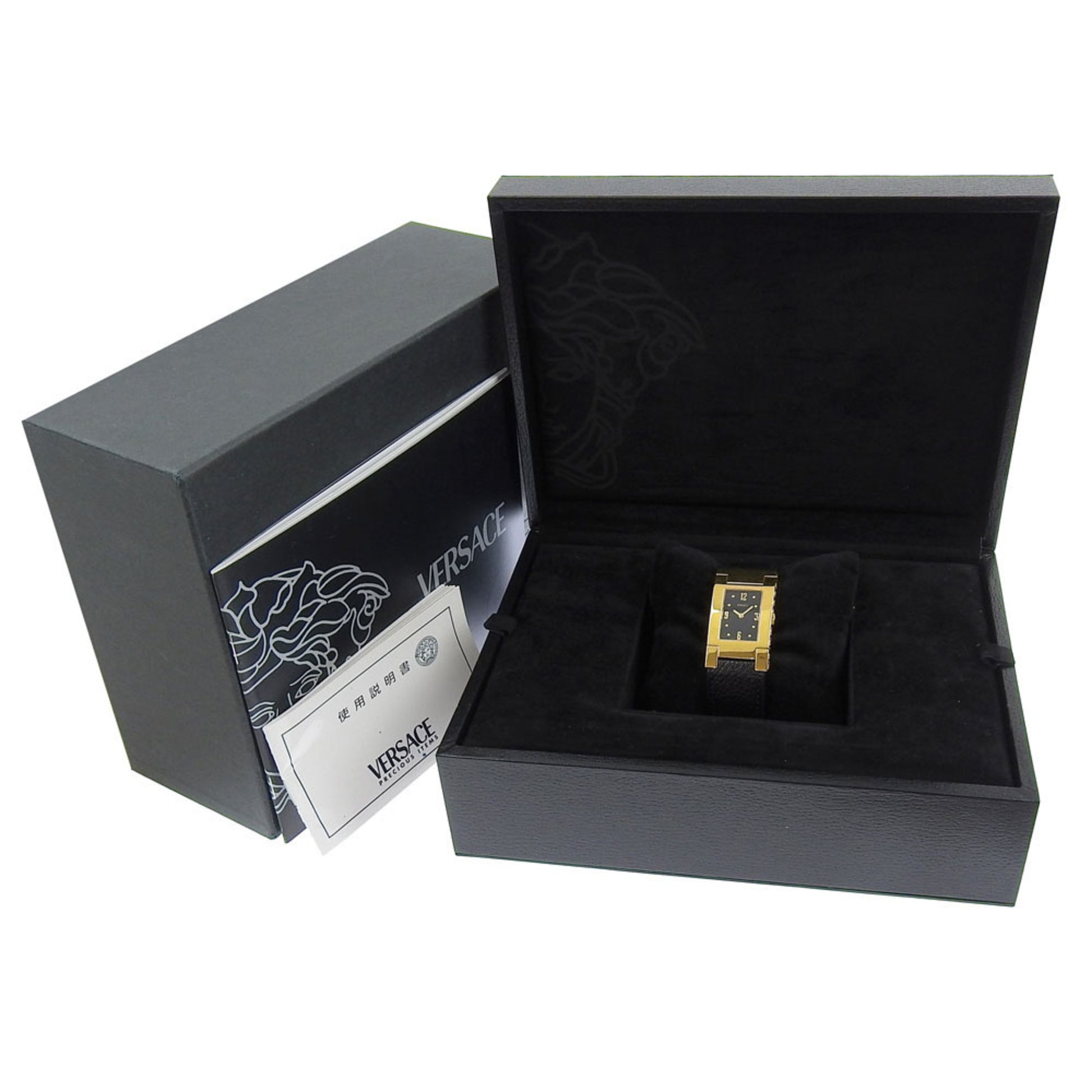 Versace Versace Alq90 Rectangular Black Dial Gp/Leather Quartz Watch Battery