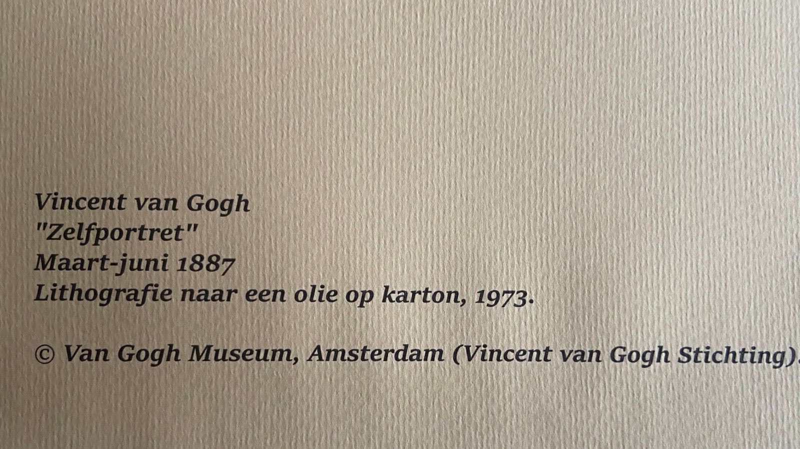 Vincent Van Gogh Museum Lithograph COA Signed Op Published (Edgar, Degas) Vincent Van Gogh "Self -portrait " Lithograph of an work of 1887 by Maestro Vincent Van Gogh, printed in 1973 by the Van Gogh Museum, Amsterdam. Signature Vincent Van Gogh on the slab. The graphic work measures 26 x 34 cm Van Gogh Museum, Amsterdam. Like Edgar Degas, Egon Schiele, Piet Mondrian, Georges Braque, Raoul Dufy, Ren Magritte, Edvard Munch, Gustav Klimt, Paul Cezanne, Renoir, Rembran......