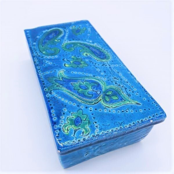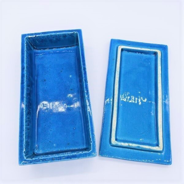 Vintage Bitossi Aldo Londi Box Blue & Green Art Pottery Trinket Box Mid Century