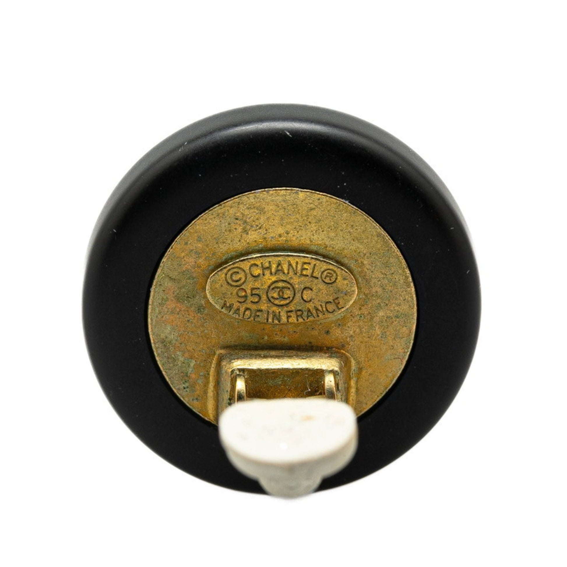Vintage Chanel Coco Mark Round Mirror Earrings In Black Plastic