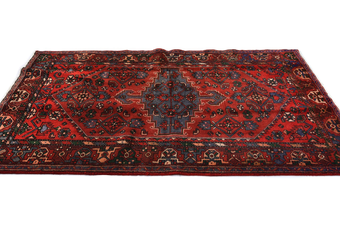 Vintage Hand-Knotted Wool Oriental Rug Red Tribal