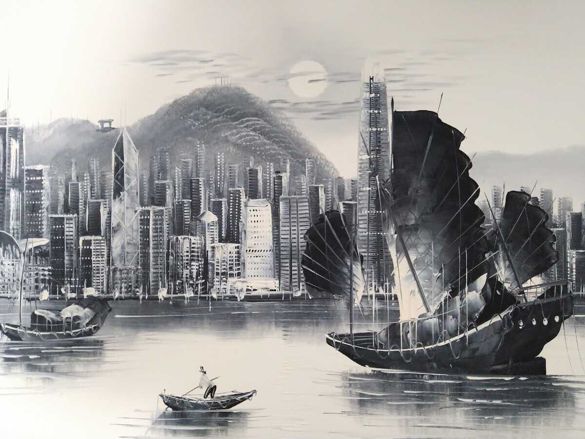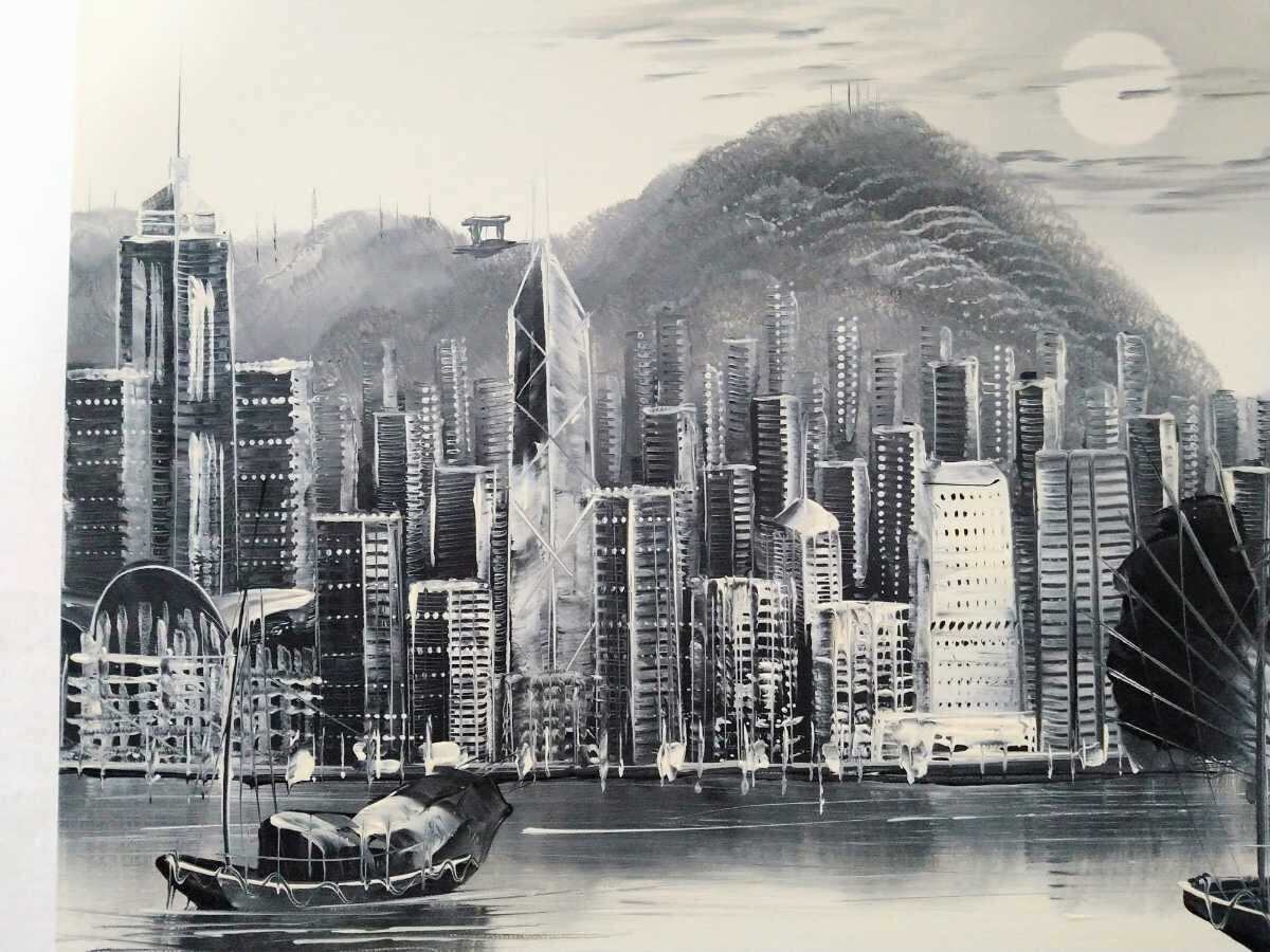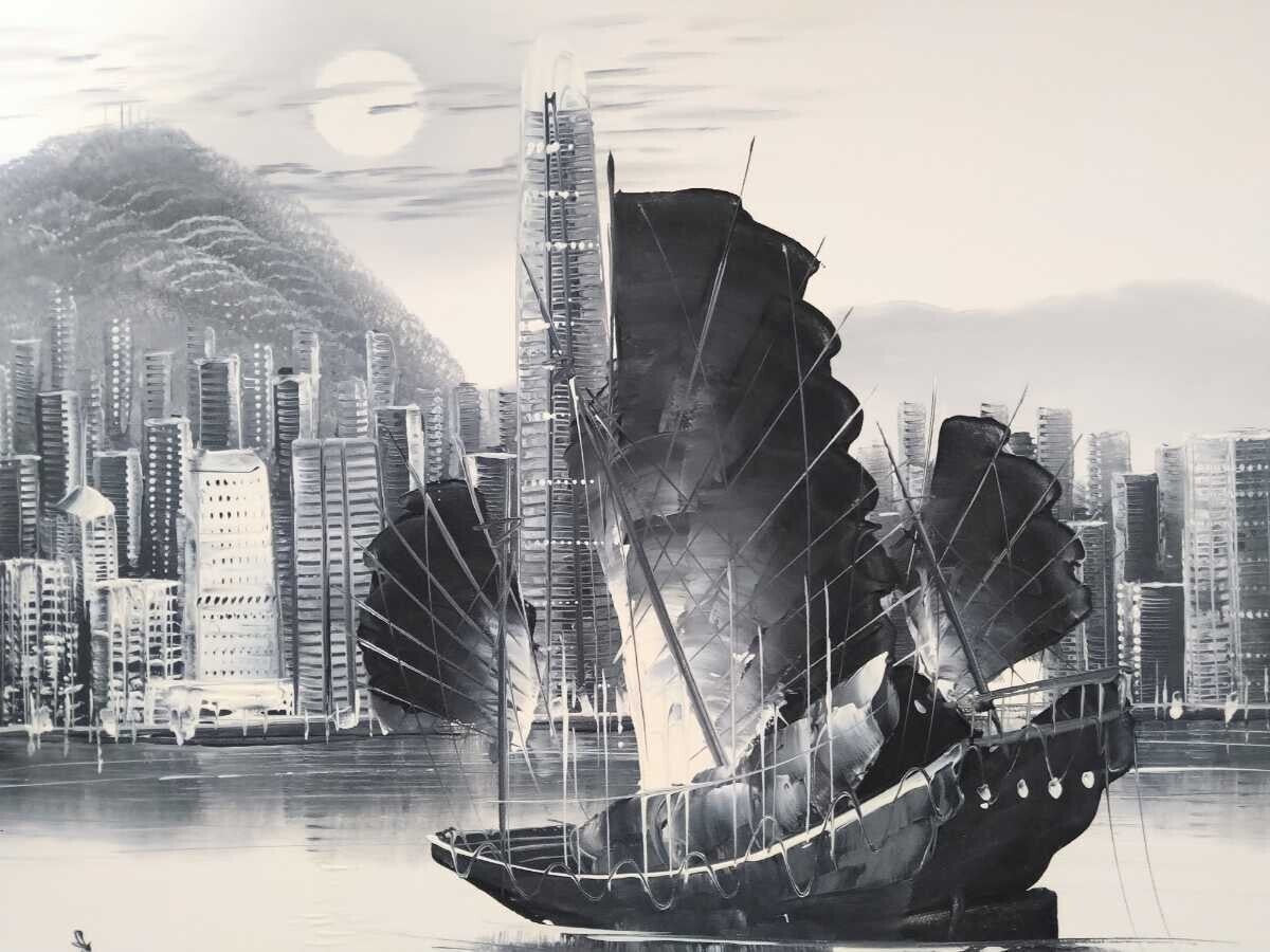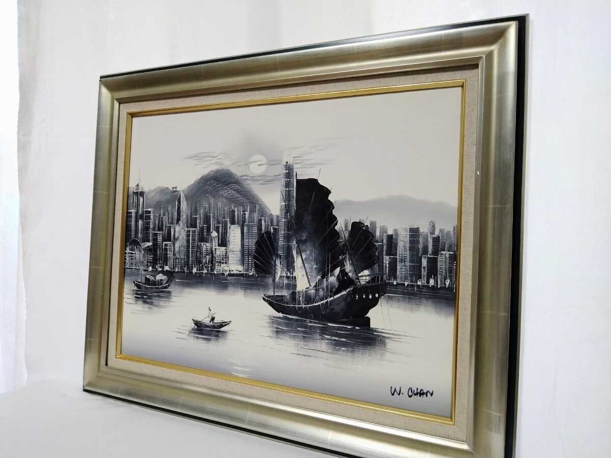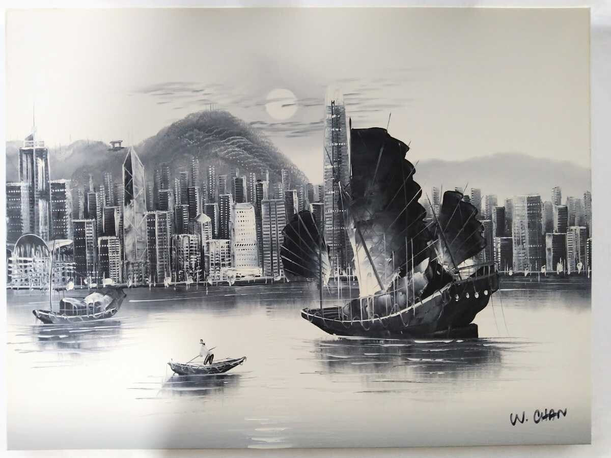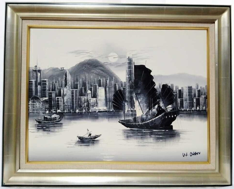 W Chan - Hong Kong Victoria Harbour Original Painting Oil On Canvas Signed