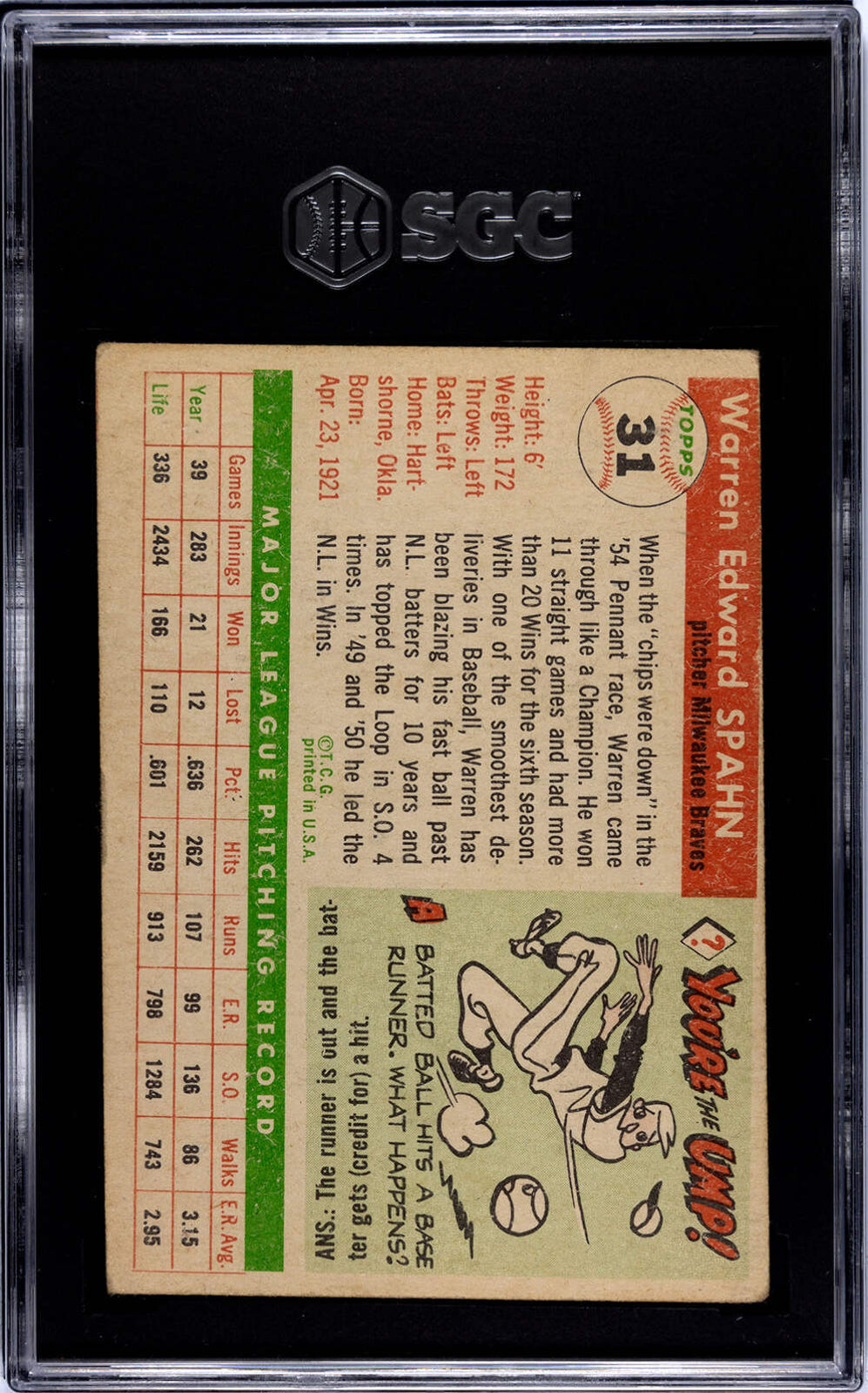 Warren Spahn 1955 Topps Card #31 Sgc 2