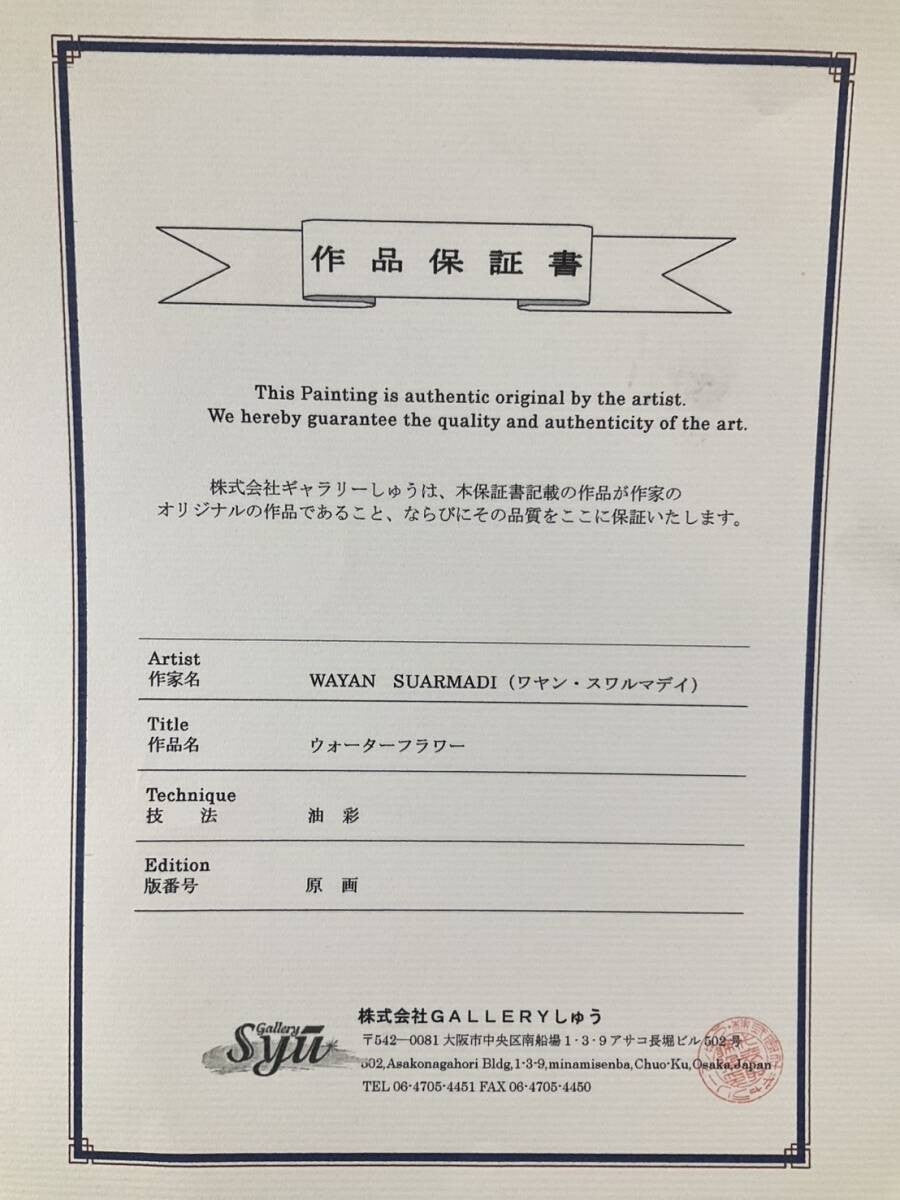 Wayan Suarmadi Oil Painting Water Flower 2001, Large Floral Landscape, Signed