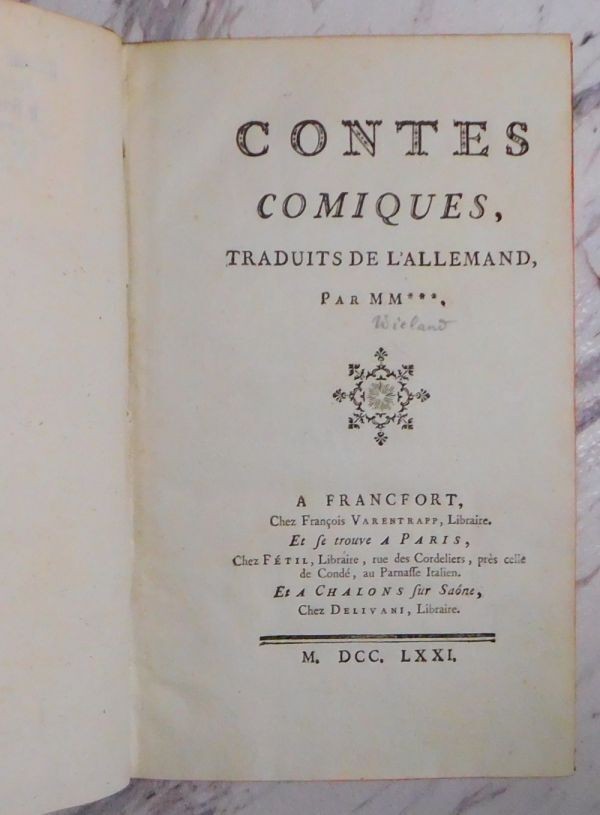 Wieland Contes Comiques 1771 Frankfurt Rare French Edition With Engraved Plate