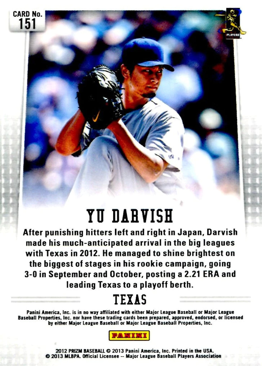 Yu Darvish 2012 Panini Prizm Rookie Card