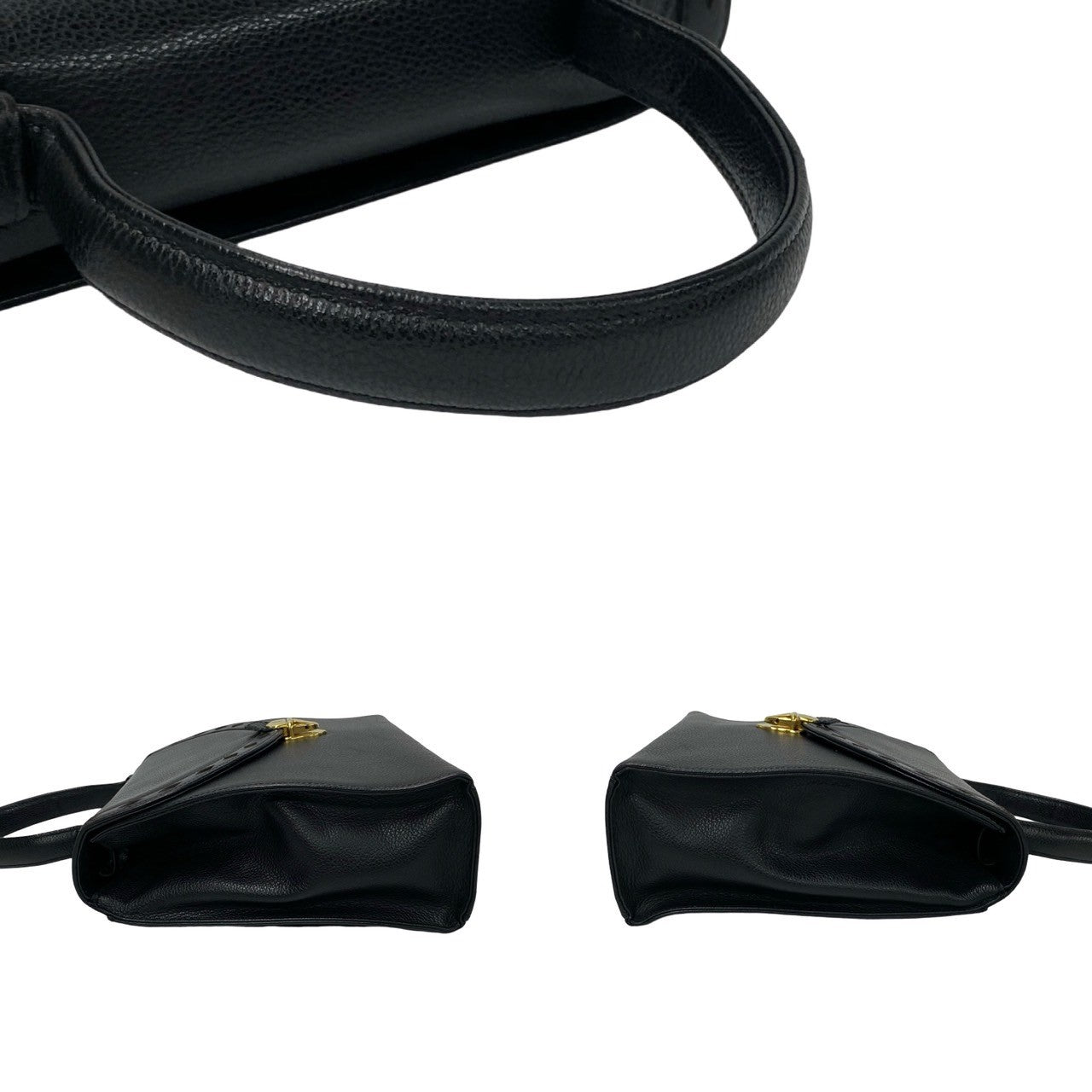 Yves Saint Laurent Shoulder Bag Leather Black Logo Metal 2Way Women