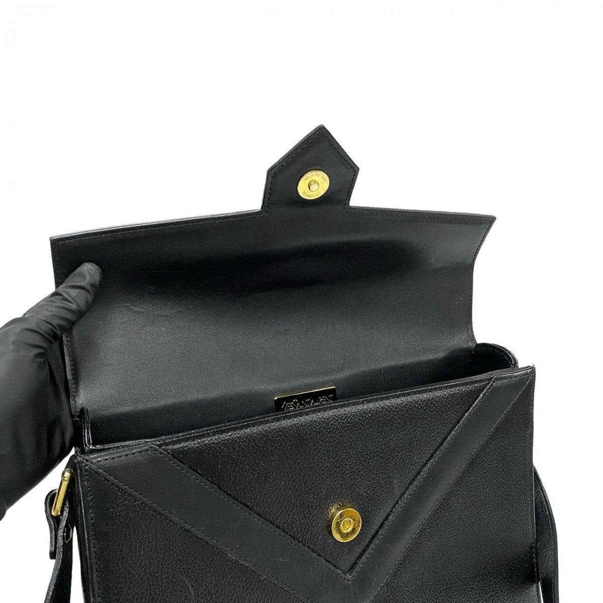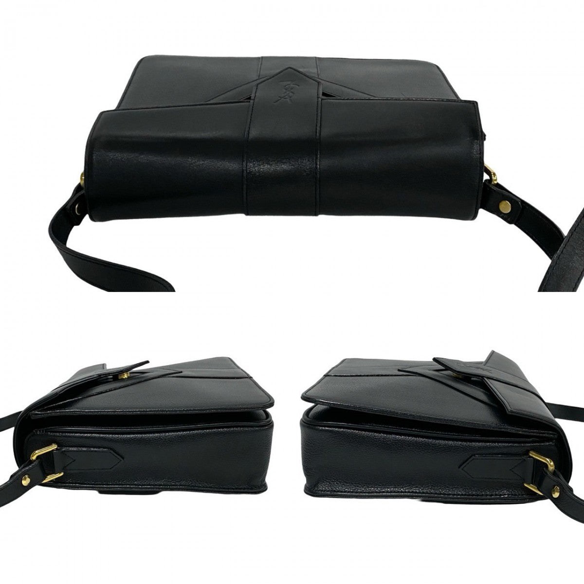 Yves Saint Laurent Shoulder Bag Leather Black Logo Women