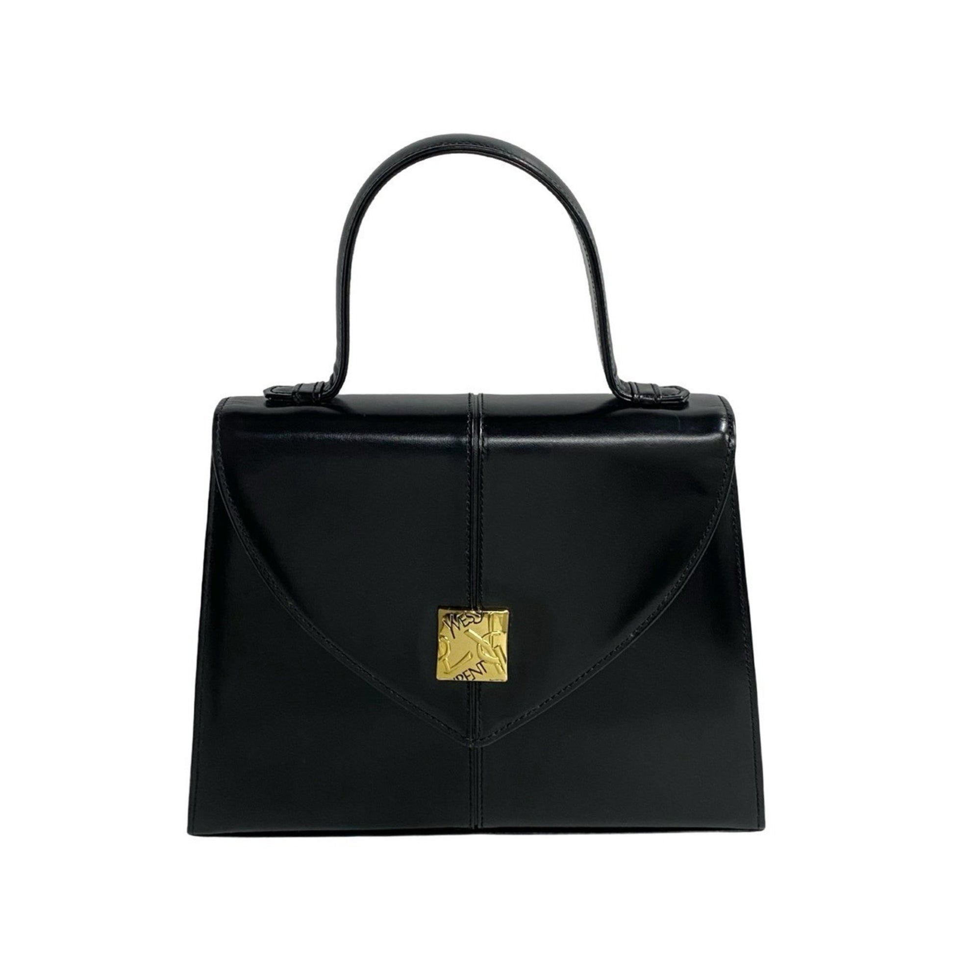 Yves Saint Laurent Ysl Logo Hardware Leather Handbag Tote Bag Black 460-5